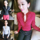 欧货2017春季新款韩版修身显瘦弹力衬衫手工缝珠盘扣旗袍打底衫女