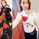 欧货2017春新款韩版修身显瘦牡丹花刺绣长袖衬衫弹力棉 打底衫女