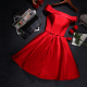 敬酒服2017春季新款新娘结婚红色晚礼服短款一字肩宴会订婚连衣裙