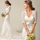 婚纱礼服2017春季新款蕾丝简约深V领一字肩中袖鱼尾拖尾显瘦婚纱