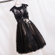 高级定制黑色一字肩中长款礼服透视蕾丝订珠蓬蓬礼服聚会走秀晚装