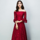 敬酒服2017新款春新娘结婚一字肩修身长袖宴会红色晚礼服裙订婚冬