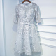 晚礼服短款2016新款中长袖显瘦时尚a字结婚小礼服伴娘蕾丝年会冬