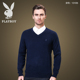 花花公子冬季男装羊毛衫男加厚V领100%纯羊毛父亲中老年男士毛衣