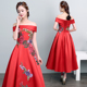 敬酒服2017新款春季一字肩长款红色新娘显瘦孕妇宴会晚礼服女春夏
