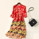 梵琳达真丝连衣裙2017欧美夏季新款短袖桑蚕丝印花中长款鱼尾裙女