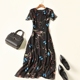 真丝连衣裙2017年夏季新款优雅气质大码女装印花100%桑蚕丝裙