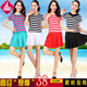 好运来广场舞服装新款夏短袖小苹果舞蹈服条纹莫代尔上衣短裙套装
