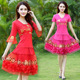 特价云裳恋衣春夏季新款广场舞蹈服装牡丹花短袖上衣裙子裙裤套装