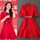 欧洲站2017春夏新品女装高端礼服腰带修身高腰红色敬酒大摆连衣裙