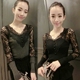 2017春秋新款大码V领性感镂空透视蕾丝上衣薄针织打底毛衣女t恤衫
