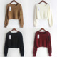 秋季韩版套头蝙蝠袖短款毛衣女复古圆领宽松高腰毛衣针织衫长袖