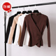2016秋冬新款v领交叉性感镂空针织衫长袖打底衫修身显瘦上衣女
