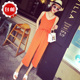 吊带连体裤女 2015夏装新款韩版时尚木耳边收腰显瘦阔腿连体裤 潮