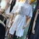韩国seven crown 7+纯色斜拉链长飘带腰封宽松落肩圆领中长连衣裙