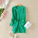 韩版文艺范立领褶皱竖条纹套头棉麻衬衫女宽松显瘦七分袖衬衣