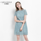卡芮茜 棉质蕾丝裙女2017夏季新款纯色通勤修身高腰连衣裙短袖