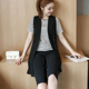 胖MM时尚套装2017夏装新款大码条纹T恤+雪纺背心阔腿裤女装三件套