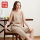 绮瑞家居服女夏棉麻睡衣纯色优雅无袖七分裤套装亚麻简约大码薄款
