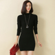秋冬新款女式中长款半高领羊绒衫抽条加厚纯色包臀连衣裙针织打底