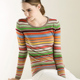 16秋冬新款圆领羊绒衫女拼色毛衣彩条纹修身套头针织打底衫韩版潮
