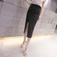 2017春夏高腰包臀裙开叉裙中长款半身裙修身性感不规则弹力裙女潮