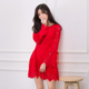 春款喇叭长袖蝴蝶结收腰显瘦红色蕾丝孕妇宽新娘回门连衣裙敬酒服