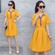 收腰连衣裙女2017新款韩版女装中长款短袖V领衬衫夏季修身A字裙子