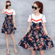 2017夏季新品雪纺连衣裙女露肩收腰五分袖中长裙韩版碎花a字裙