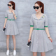 韩版2017夏季刺绣花修身收腰条纹短袖百搭连衣裙衬衫裙子女装夏装