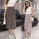 2017春夏新款雪纺条纹花裙子大摆松紧半身裙优雅压褶中长裙