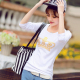 2016新款夏装女装印花短袖棉T恤修身圆领白色体恤女打底小衫韩版
