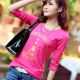 春季新款女装长袖t恤女韩版修身打底字母印花纯棉小衫上衣女外穿