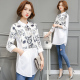 加肥大码女装2017春季新款韩版宽松休闲显瘦胖妹妹mm印花衬衫上衣