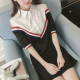 2017夏装新中长款条纹套装裙夏季时尚款韩版学生连帽短袖连衣裙女