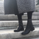 16秋冬骑士靴褶皱中筒靴黑色欧美粗跟踝靴女圆头短靴单靴中跟女靴
