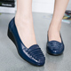 软牛皮妈妈鞋中年女单鞋真皮软底坡跟中跟浅口鞋中老年女鞋春秋鞋