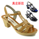 夏季中跟鱼嘴女凉鞋粗跟罗马中年妈妈鞋中老年真皮凉鞋女鞋防水台