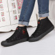 春秋新款休闲鞋内增高韩版潮高帮帆布鞋全黑色平底布鞋学生球鞋女