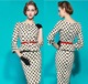 ebay 亚马逊欧美热卖中袖复古波点圆领修身弹力包臀铅笔连衣裙