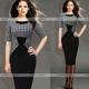 亚马逊速卖通Ebay欧美明星时尚修身中袖性感 蕾丝连衣裙铅笔裙