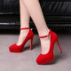 欧美性感女鞋红色结婚鞋细跟宝蓝色超高跟鞋一字扣尖头新娘鞋单鞋