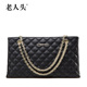 老人头2017新款高档牛皮女包欧美小香风菱格链条包包手提包单肩包