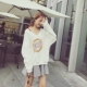 韩国学生短袖夏装数字韩版竹节棉显瘦开叉宽松中长款t恤女裙大潮