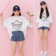 BF夏装韩版体恤上衣半袖百搭卡通中长款宽松短袖T恤女学生衣服潮
