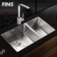 弗林斯洗菜盆双槽台下盆手工水槽304厨房不锈钢水盆水槽双槽套餐