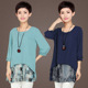 棉麻衬衫短袖上衣亚麻女装T恤衫小衫印花修身中年妈妈装夏装新款