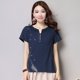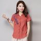 棉麻短袖衬衫女2016夏装新款休闲印花衬衣中年大码女装宽松妈妈装