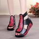 夏季新款民族风女鞋真皮中老年妈妈鞋软底鱼嘴鞋厚底松糕坡跟凉鞋