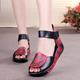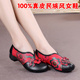 民族风真皮女鞋坡跟防滑圆头单鞋浅口绣花魔术贴中老年皮鞋妈妈鞋